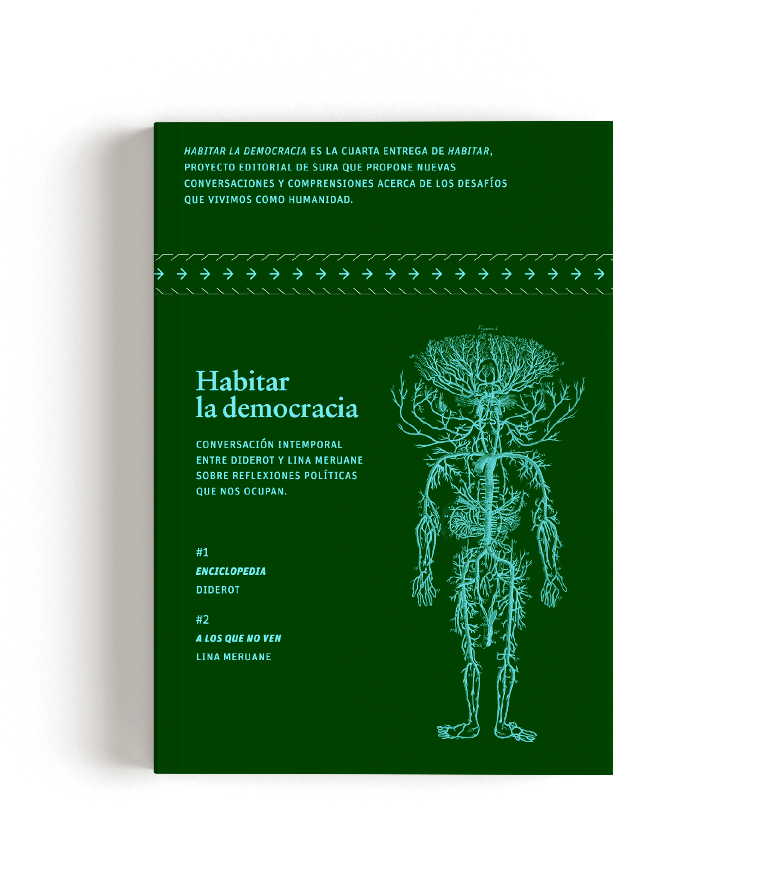 Habitar la democracia nos convoca en torno a una antología adaptada con 28 definiciones fundamentales sobre la esencia de la democracia que son parte de la Enciclopedia, el ambicioso proyecto editorial liderado por Denis Diderot entre 1751 y 1772. Esta selección es comentada en 2024 por la escritora chilena Lina Meruane en su ensayo A los que no ven, quien desde su voz, su historia y su mirada particulares plantea en género epistolar argumentaciones que evidencian que la democracia requiere de la apertura a pensamientos diversos.