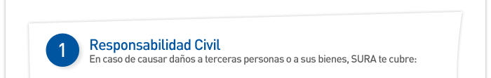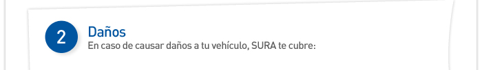| Incluye, entre otros: • Amparo patrimonial • Repuestos originales • Eventos de la naturaleza y terrorismo • Gastos de traspaso en pérdida total • Inspección a domicilio • Elección de talleres • Pago de parqueadero en el tránsito |